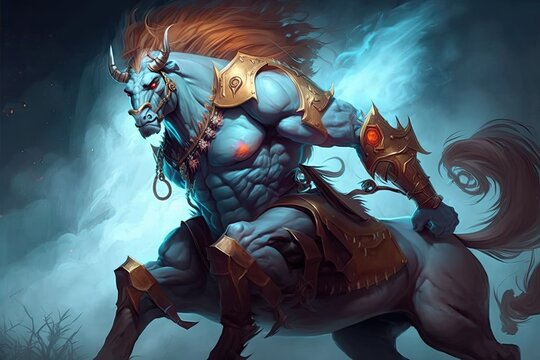 A powerful centaur warrior, who can charge into battle to stun enemy units and increase his own strength and durability. Digital art painting, Fantasy art, Wallpaper