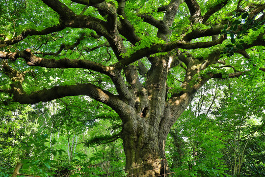 Dense foliage over a centenary Oak tree in the Green Forest