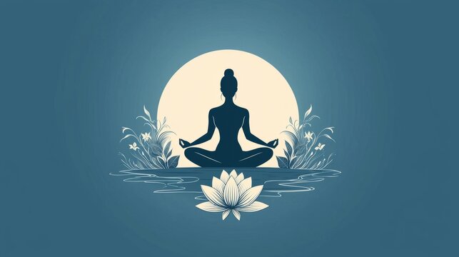 A minimalistic badge for a yoga studio, featuring a simple meditative pose or lotus flower within a soft, circular design, with calming colors like light blue and white