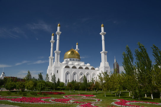 Artistic Central Asia map, textured, patterned, historical buildings background, travel brochure