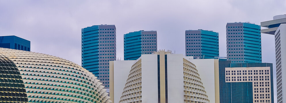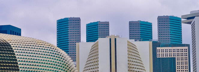 Sunset view towards Bayterek tower and hous of ministries in Astana Kazakhstan on a clear day