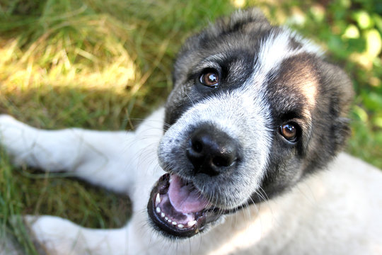 Red rusty Caucasian shepherd dog profile isolated on white background