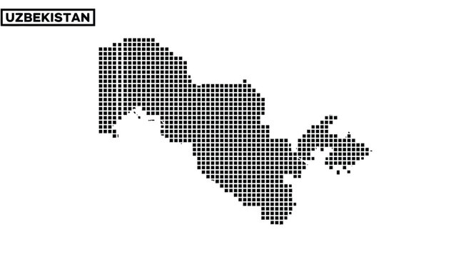 Vector illustration of Uzbekistan map in black and white dot pattern on white background with inset