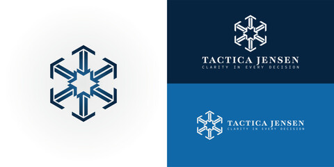 The logo features six arrows radiating from a central star, incorporating the initials TJ. This design symbolizes integrated data, global analytic, and the platform's ability to analyze worldwide data