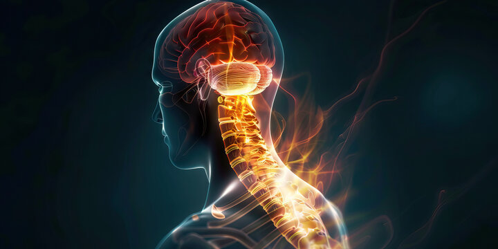 Central Pontine Myelinolysis: The Muscle Weakness and Paralysis - Picture a person with a highlighted area in the brainstem showing demyelination, experiencing muscle weakness and paralysis