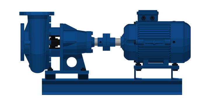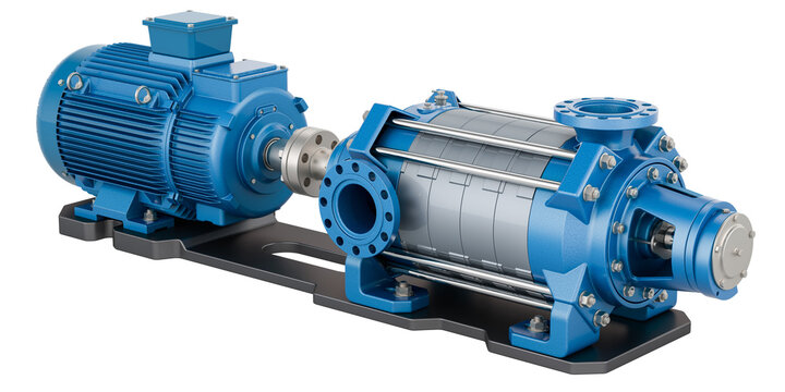 Horizontal multistage centrifugal pump. Electric water pump, 3D rendering  isolated on transparent background