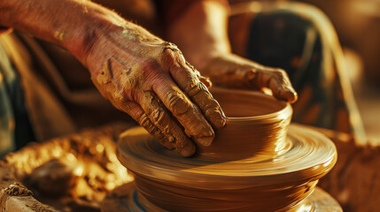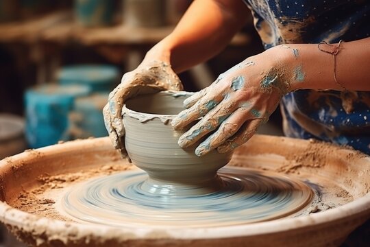 making ceramic work traditional clay pottery skill dirty hand handmade HD