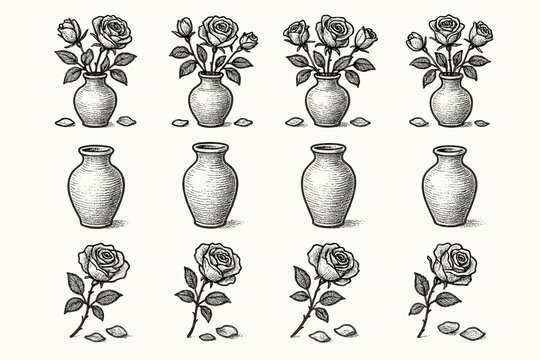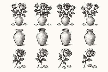 vase, pottery, ceramic, silhouette, black, white, background, isolated, collection, set, design, abstract, modern, shape, jug, amphora, bottle, organic, minimalist, decor, home, interior, art, graphic
