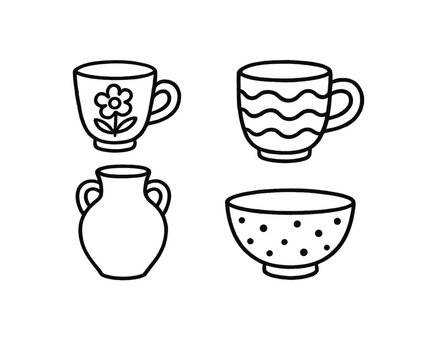 handdrawn cute doodle style handmade ceramics vector line illustration