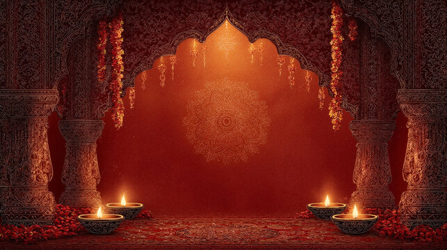 An ornate, traditional Indian interior with candles creates a warm, festive atmosphere.
