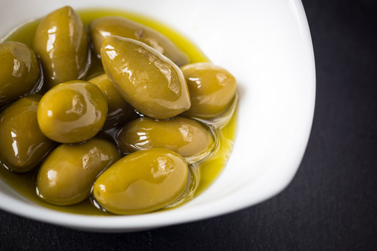 Castelvetrano Olives. Fresh Green Olives on White Plate, Isolated on White Background