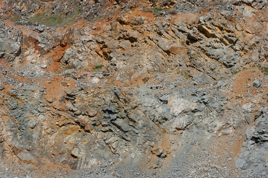 A close-up view of the walls of an old abandoned quarry. In this quarry, limestone was mined.
