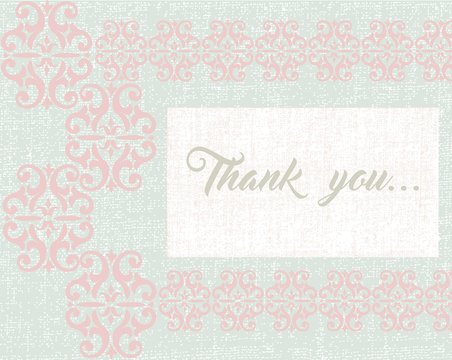 Thank you card or postcard with damask ornaments. Place for text. Vector