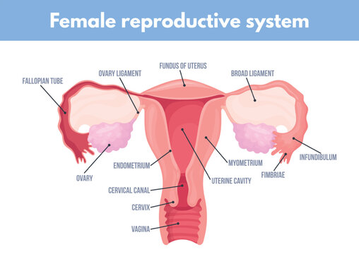 Female reproductive system. Uterus anatomy medical education diagram, woman internal genital cervical womb fallopian tube ovary cervix pregnancy gynecology neat vector illustration