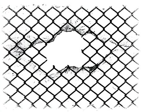 The texture of the metal mesh on a white background. Cage metal wire on pale white background. Chain link mesh fence pattern isolated on transparent background.