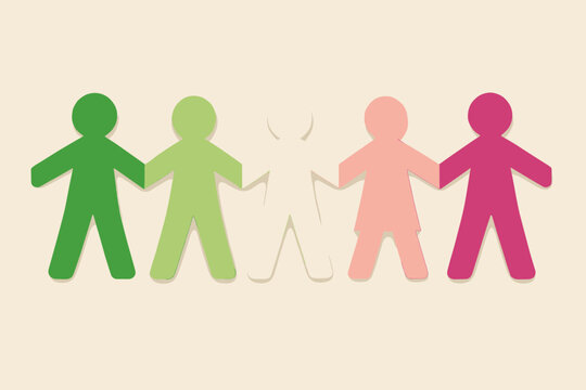 Unity and collaboration concept with diverse paper cutout figures holding hands