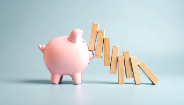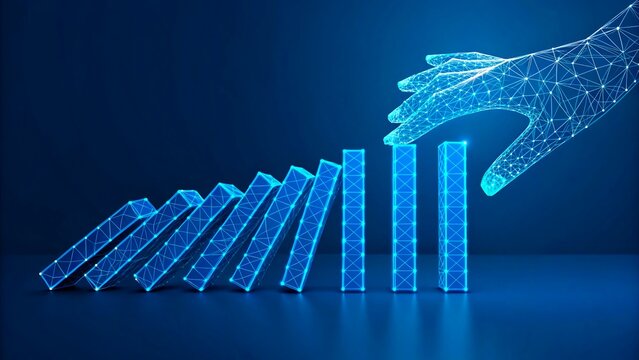 Stopping the Domino Effect - A Hand Preventing Wooden Blocks from Falling.