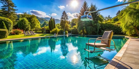 Accessible Poolside Chair Lift for Disabled Individuals on a Sunny Day - Inclusive Swimming Experience