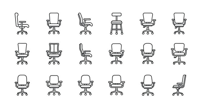 Collection of office swivel chairs in various styles and angles for modern workspace design vector
