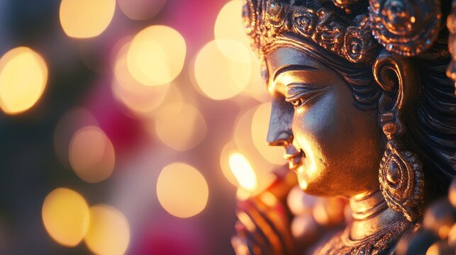 Close up of goddess durga statue during chaitra navratri celebrations in vibrant festivity