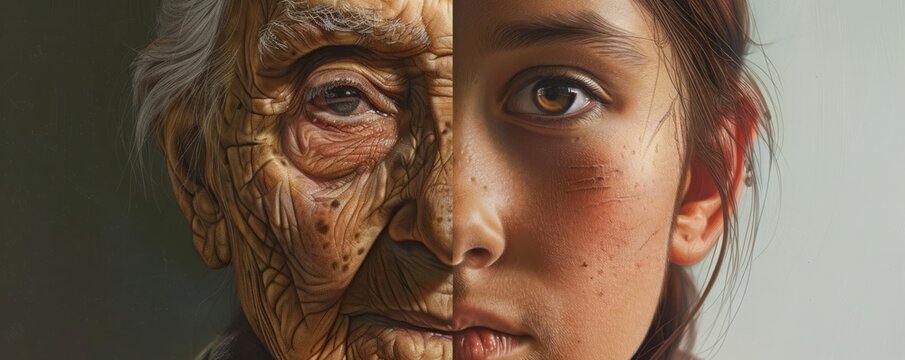 Dual-perception art showcasing a human portrait that flips between youth and age, challenging viewers