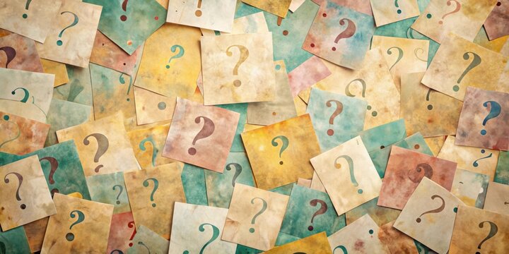 A Collection of Aged Papers Featuring Intriguing Question Marks, Symbolic of Inquiry and the Pursuit of Knowledge