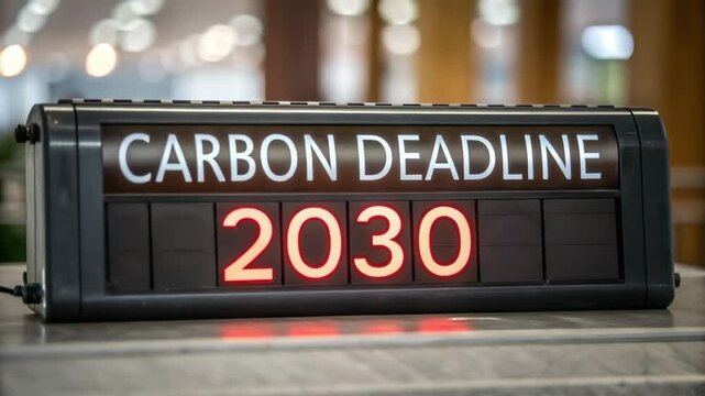 Carbon Reduction concept. A digital clock displays "CARBON DEADLINE 2030," emphasizing the urgency of addressing climate change.