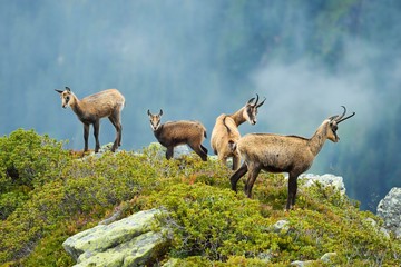 Group chamois (Rupicapra rupicapra) with pups, Bernese Oberland, Switzerland, Europe