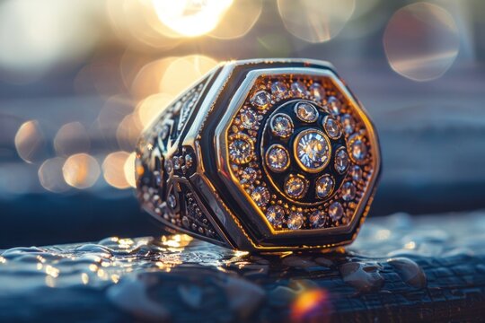 Trophy glowing under dramatic blue lighting with flying confetti, symbolizing achievement, success, and championship victory in a dark, cinematic setting.