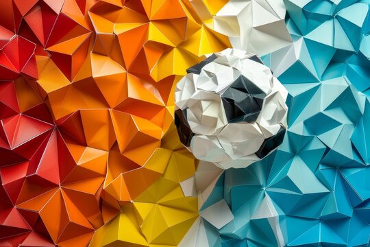 Icons logos compositions and illustrations for football teams tournaments and soccer championships are presented in colorful faceted origami backgrounds.