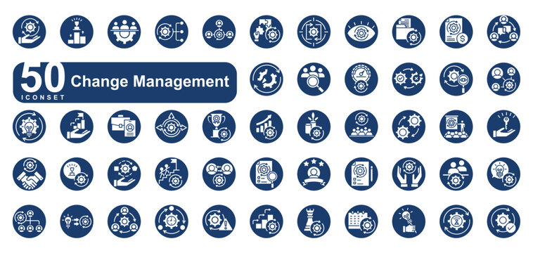 Change management icon collection set. Containing management, teamwork, business, leadership, mentoring, implement, employee icon. Simple line color vector.