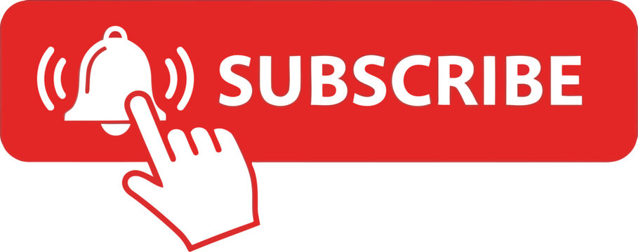 Hand clicking red subscribe button with notification bell icon engaging viewers for channel growth vector