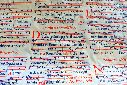 Historical music icons set. Gregorian chant monk and church choir singers glyphs. Sacred choral music concert, vocal lesson, religious singing symbols collection vector.