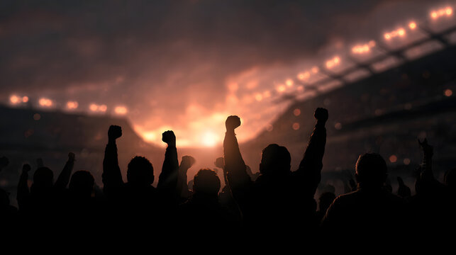 Silhouette of fans cheering at a football game