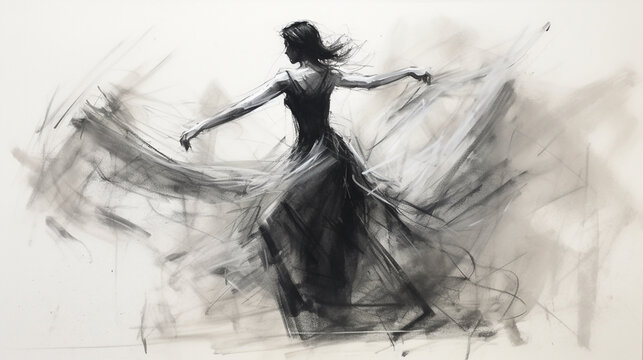 figure, expression pose - black charcoal technique