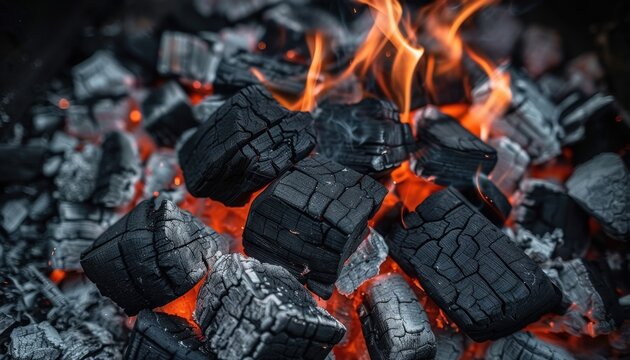 Glowing charcoal embers igniting flames during a summer barbecue in a backyard