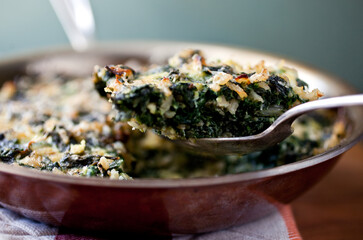 Close up view of  organic rainbow chard plants growing in an allotment. Shiny curly green leaves with red and yellow stems.