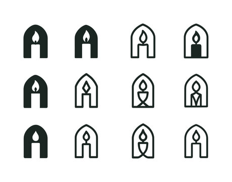 Catholic Charities Icon Grid. Catholic charities. Icon set. Set Logo of Catholic charities: candle of faith. harmonious logo variations of the same emblematic