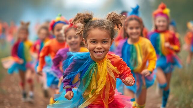 Zombie-Themed Fun Run, kids and adults dressed as zombies participating in a charity fun run through a city park, Halloween, with copy space
