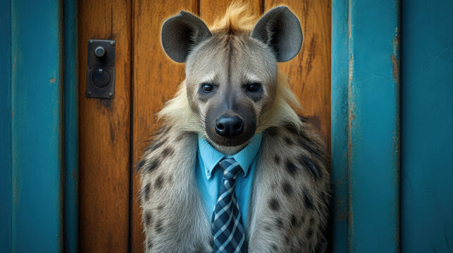 une hyène anthropomorphe, allégorie du commercial malhonnête qui vient sonner à la porte