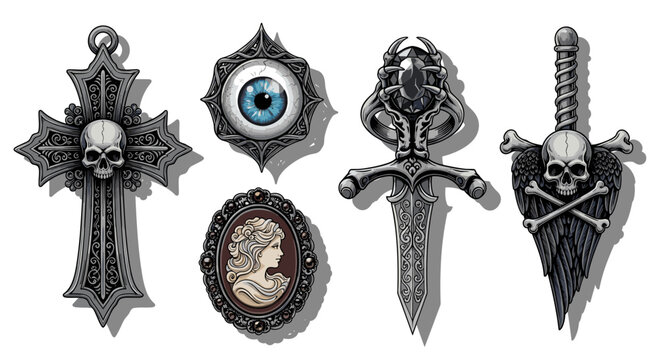 Lucky charm set. good luck silhouette icons. horseshoe, clover, dice, feather, wishbone vector icons.