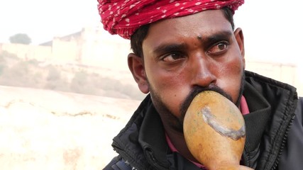Snake charmer at the street of Jaipur, India