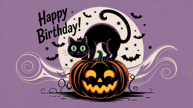 Charming black cat birthday celebration card design