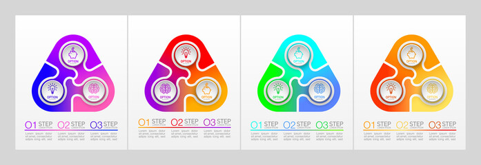 Puzzle pieces with 4 elements. Business presentation infographic. Jigsaw outline grid template.. Layout of thinking mosaic game. Laser cut template with separate details. Vector illustration.