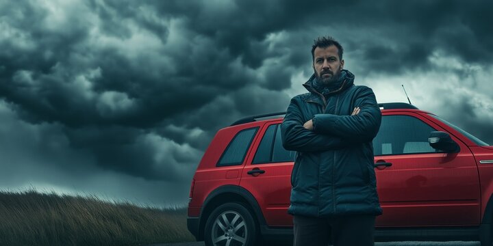 Storm Chaser Photographer Capuring The Moment A Huge Storm Crosses The Road