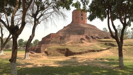 Holy buddhist Chaukhandi Stupa in Sarnath, India, 4k footage video