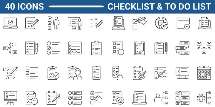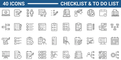 To do list, Checklist line icon set.  Contain icons related to checklist, plan, task, and to do list. Editable stroke. Vector illustration