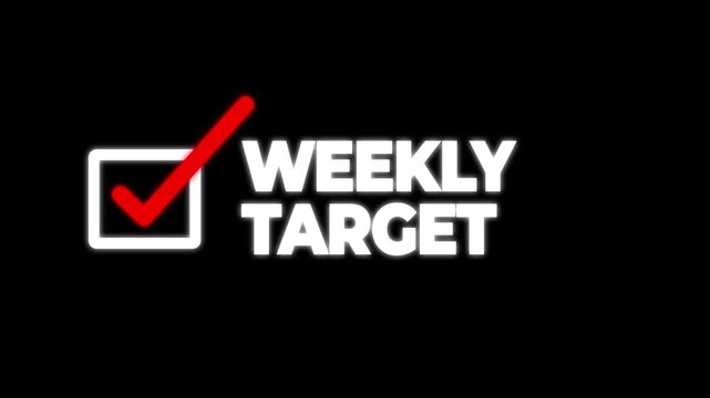 Glowing checking ticking mark with marker on the checkbox along weekly target typography, 4k footage. Target achieved, checklist item.4k video animation.
