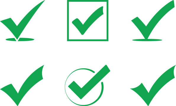 Collection of green checkmarks illustrating confirmation validation approval success selection and choices