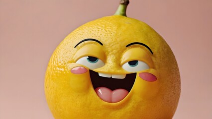 A yellow lemon giving a cheeky wink, with a blushing cartoon face 2
